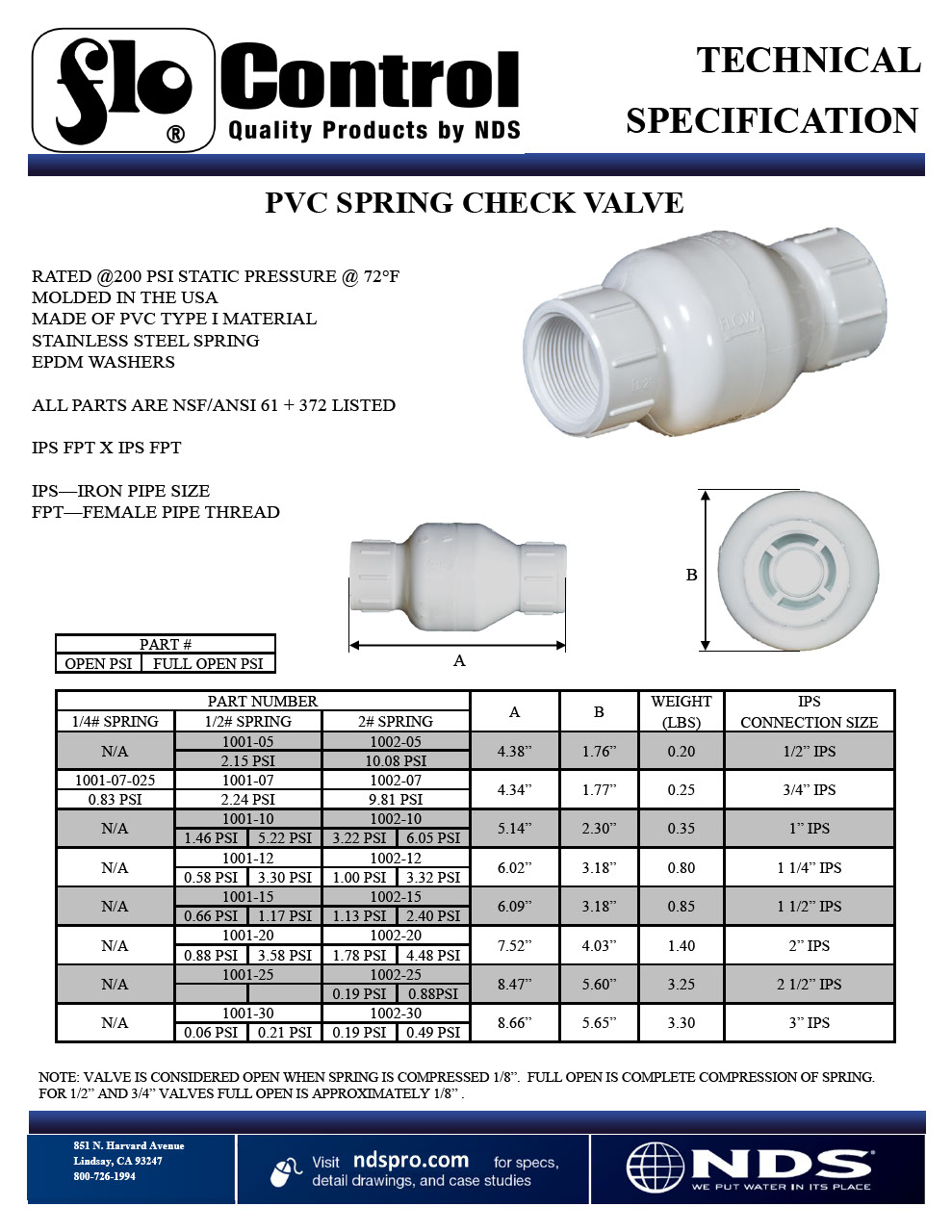 PVC Spring Check Valve, 1 in. IPS FPT X FPT, 1/2 lb. Spring, White